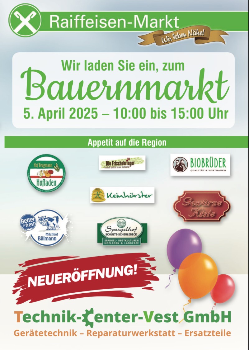 Die Technik-Center-Vest GmbH wurde am 1. Oktober 2024 von den Gesellschaftern Raiffeisen Emscher-Lippe eG und Heinrich Franzgrote Land- und Gartentechnik gegründet. Die Raiffeisen Emscher-Lippe eG ist mit vier Standorten in Recklinghausen, Datteln, Marl und Marl-Polsum ein etablierter Ansprechpartner für Landwirtschaft, Haus, Tier und Garten im Kreis Recklinghausen. Die Heinrich Franzgrote Land- und Gartentechnik blickt auf eine fast 200-jährige Unternehmensgeschichte zurück und ist in Waltrop als Fachbetrieb für Land- und Gartentechnik bekannt. Durch diese Partnerschaft bündeln wir unsere Kompetenzen, um unseren Kunden erstklassige Beratung, hochwertige Produkte und einen umfassenden Werkstattservice zu bieten. Unser Ziel ist es, Ihre Geräte in einem optimalen Zustand zu halten oder sie schnell und zuverlässig wieder einsatzbereit zu machen.